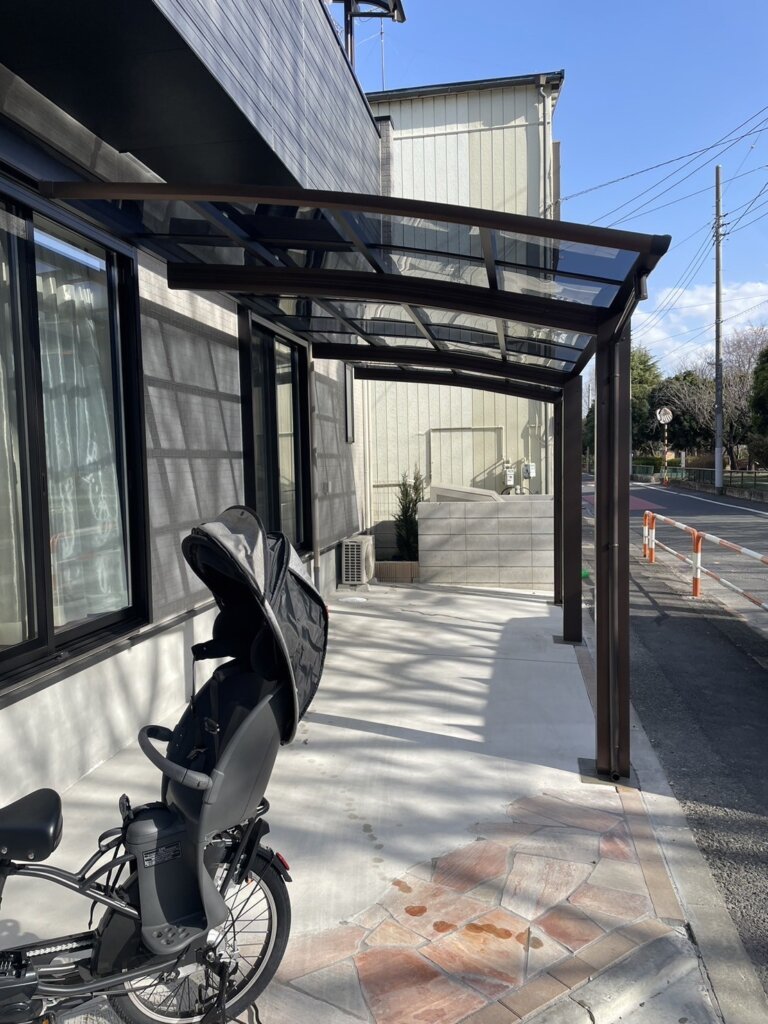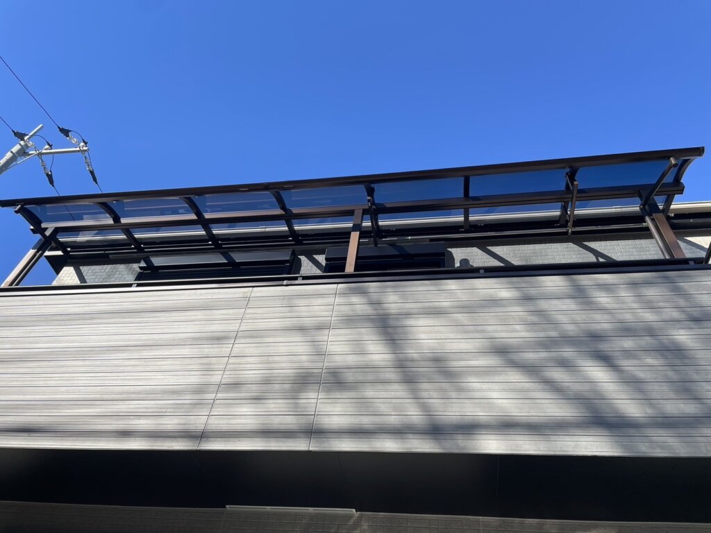 今回は、お住まい全体の雰囲気に調和するよう、テラス屋根・バルコニー屋根ともにルーフタイプで施工いたしました。