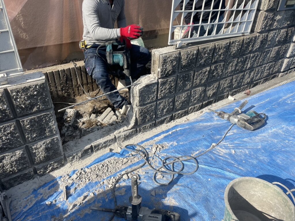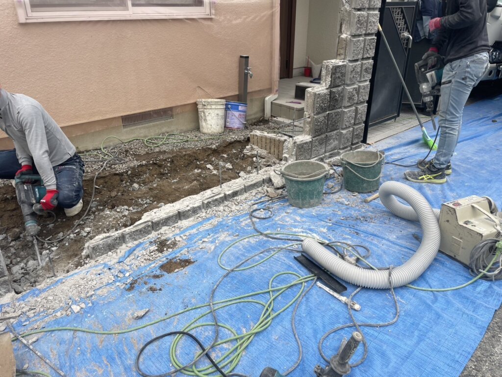 ブロック塀(花壇)撤去。土間コンクリート新設工事