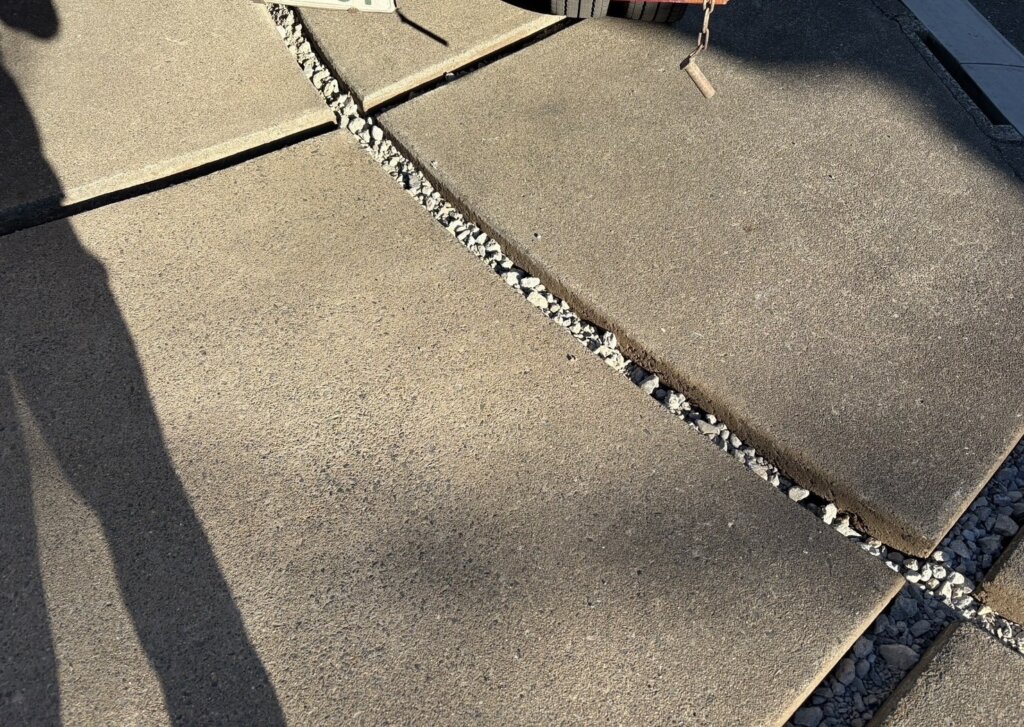 今回は土間コンクリートの目地芝が枯れてしまい、雑草が目立ってきた為すべて撤去後デザイン土間のご依頼をいただきました。
