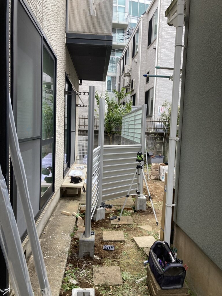 フェンスは上下で素材を変えており、上の段は日差しが入りやすく下の段は視線をしっかり遮るフェンスにしてます。