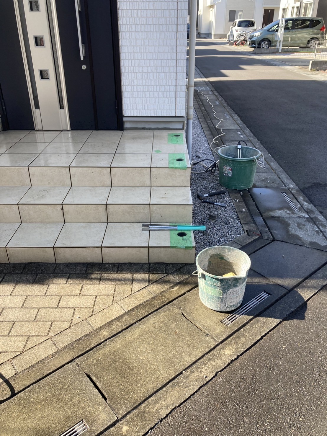 今流行りのアイアン風手すり。玄関がよりオシャレに。