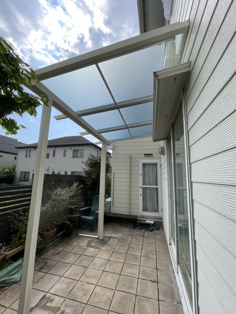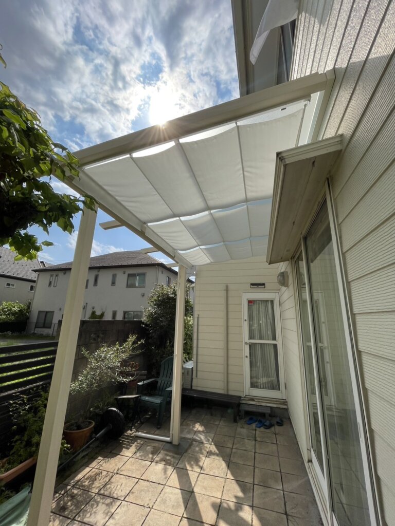 こちらのテラス屋根はサンシェードカーテン付きで日差しもしっかりカットできます。